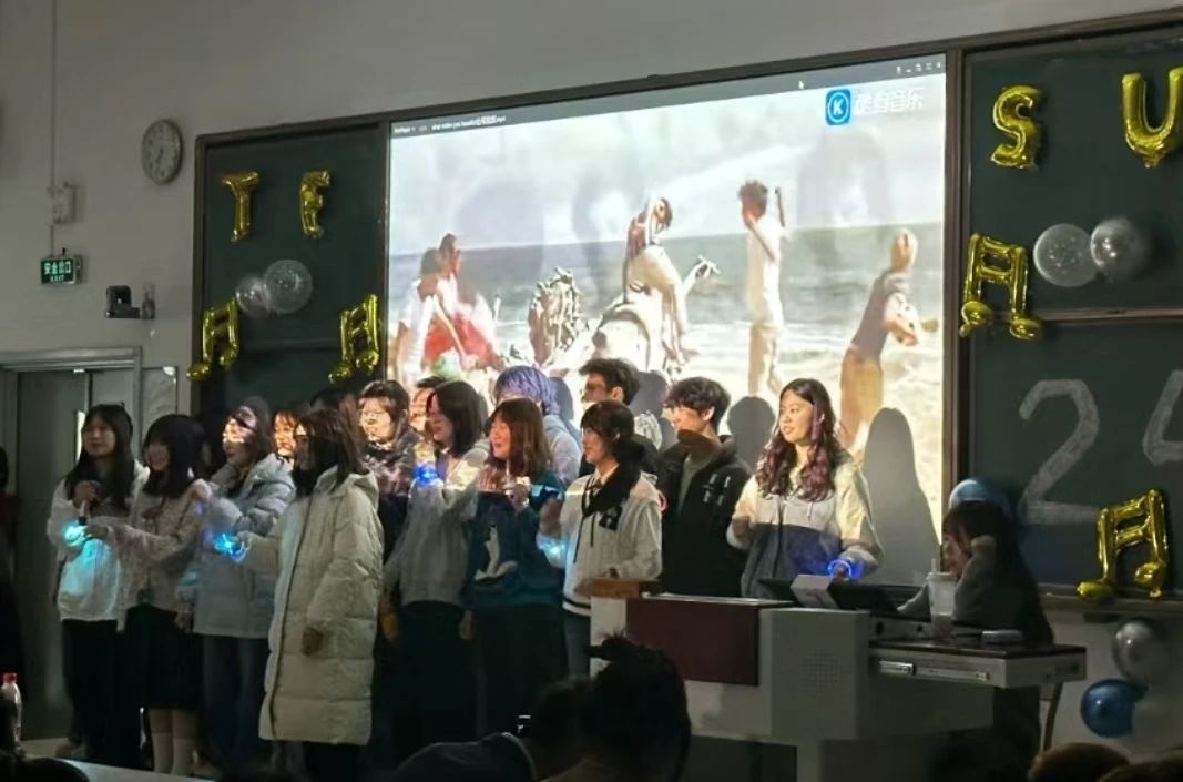 奇思妙想的结合,丰富多样的表现形式,将青春活力展现得淋漓尽致240111班的同学们以一曲《Heal The World》唱响了对和平与爱的渴望,他们的歌声如同温暖的春风,传递着对美好世界的向往。240104班则选择通过现场表演的形式,将《不要温和地走进那个良夜》带到舞台之上,以饱满的激情展现了生命的蓬勃,以及青年人对生活的热爱。