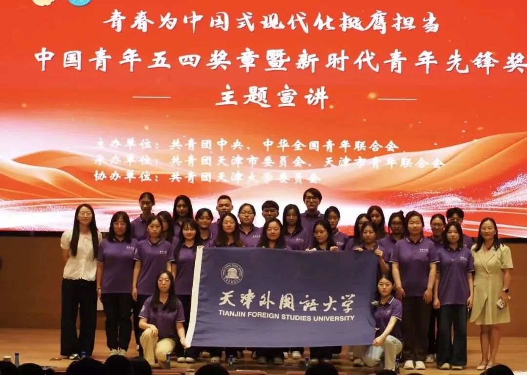 为深入学习宣传贯彻习近平总书记重要讲话精神和给新疆谢依特小学戍边支教西部计划志愿者服务队队员回信精神,强化对广大青年的政治引领,bat365在线平台官方网站师生代表赴天津大学参加“青春为中国式现代化挺膺担当”中国青年五四奖章暨新时代青年先锋奖主题宣讲暨主题团日活动。
